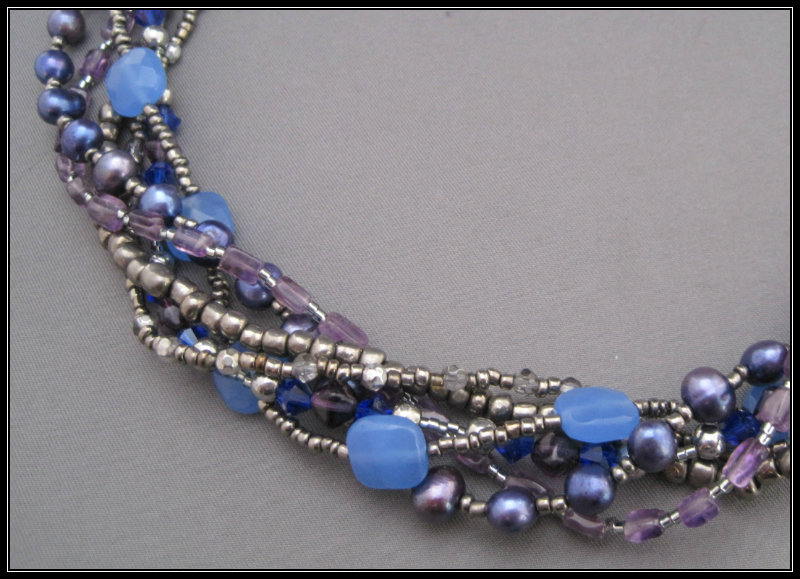 This is the opposite wall from the desk, and has a nice closet to hide my mountains of other crafts supplies and display items. I have a life-sized mannequin which not only looks good at shows, but she helps me a lot when designing necklaces. It's much easier to tell the length of a piece or how it lays when worn. Another shelf holds all my finished jewelry and packaging supplies. Lastly, a chair, which usually holds a sleeping cat :)